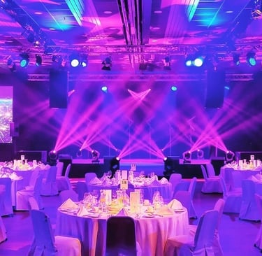 Dinamiski gaismu risinājumi skatuves dizainam un atmosfērai.